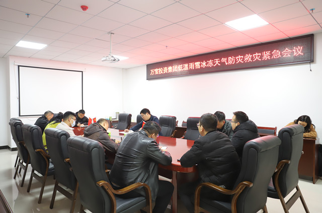 12月24日上午,萬(wàn)寶投資集團(tuán)總經(jīng)理徐業(yè)波主持召開緊急會(huì)議,就應(yīng)對(duì)低溫雨雪冰凍防災(zāi)救災(zāi)工作作出安排部署,要求全體人員迅速進(jìn)入臨災(zāi)應(yīng)急狀態(tài)。綜合管理部、項(xiàng)目前期部、工程管理部及子公司相關(guān)工作人員參加。