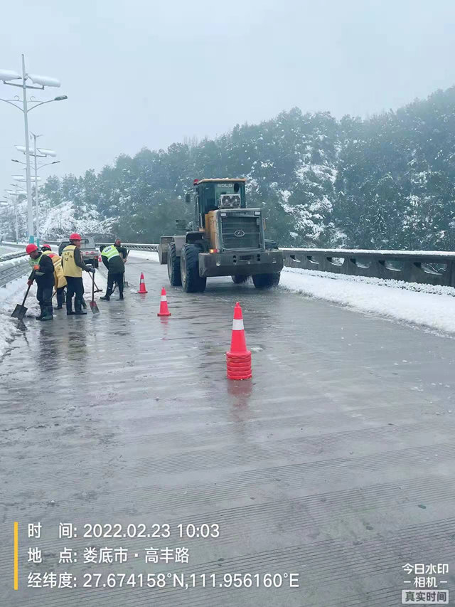 為確保轄區(qū)范圍內不發(fā)生房屋倒塌,確保道路暢通以及安置基地、在建項目、公路、企業(yè)、人民群眾生命財產安全,萬寶投資集團上下一心,日夜奮戰(zhàn),全力以赴做好掃雪除冰保暢安行動。集團總經(jīng)理徐業(yè)波對工作做出具體安排。集團干部職工調配機械設備和應急物資,班子成員帶隊上路巡查,堅守在各在建工地、安置基地,對婁雙公路、高豐路、早元西街、婁底城區(qū)路段主干道、孫水河4座大橋容易積雪的路段,采用“人工+機械”巡回作業(yè)除雪方式,清理積雪,拋灑工業(yè)鹽。截止23日下午,集團出動50余人次,機械設備8臺次,拋灑工業(yè)鹽18噸,清理積雪15公里,確保轄區(qū)內主干道、橋梁及時暢通,保障了群眾的出行和財產安全。
