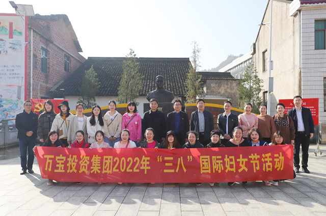 陽春三月,春風送暖。3月8日上午,萬寶投資集團到賀國中故居開展“三八”國際婦女節(jié)活動。董事長梁養(yǎng)賢、總經(jīng)理徐業(yè)波、監(jiān)事會主席伍岳、副總經(jīng)理謝緯、紀委書記葛旭華及公司全體女職工參加。