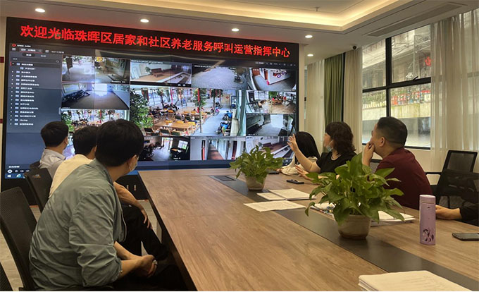 (考察珠暉區(qū)居家和社區(qū)養(yǎng)老服務(wù)呼叫運營指揮中心)