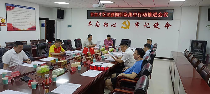 百畝片區(qū)過(guò)渡棚拆除集中行動(dòng)推進(jìn)會(huì)議現(xiàn)場(chǎng)
