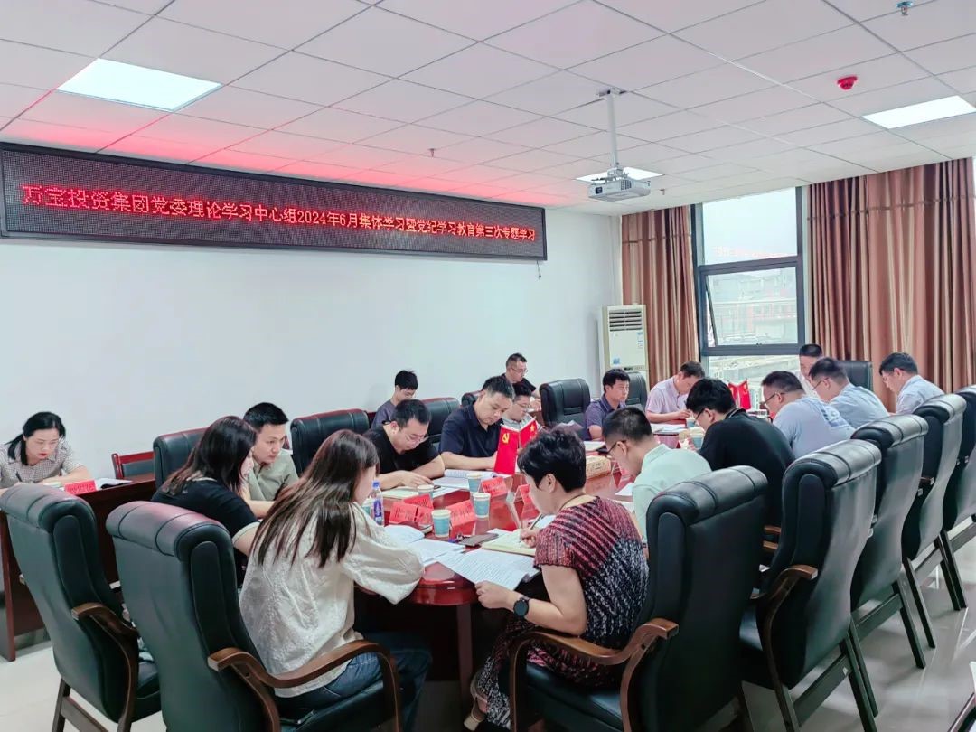 6月28日,萬寶投資集團黨委書記、董事長陽文林主持召開黨委理論學(xué)習(xí)中心組2024年6月集體學(xué)習(xí)暨黨紀學(xué)習(xí)教育第三次專題學(xué)習(xí),深入學(xué)習(xí)領(lǐng)會習(xí)近平總書記關(guān)于全面加強黨的紀律建設(shè)和優(yōu)化營商環(huán)境、招商引資、民營經(jīng)濟發(fā)展的重要論述,逐章逐條學(xué)習(xí)《中國共產(chǎn)黨紀律處分條例》,推動黨紀學(xué)習(xí)教育走深走實,持續(xù)在學(xué)思用貫通、知信行統(tǒng)一上下功夫。黨委副書記、總經(jīng)理徐業(yè)波,黨委委員、紀委書記葛旭華,黨委委員易志高,全體主管及以上人員參加。