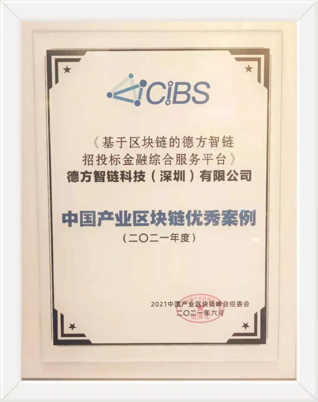 6月3日,2021中國產(chǎn)業(yè)區(qū)塊鏈峰會在湖南長沙隆重舉行,峰會以“產(chǎn)業(yè)驅(qū)動 鏈以致用”為主題,云集近百位行業(yè)知名專家、學(xué)者、企業(yè)領(lǐng)袖與相關(guān)產(chǎn)業(yè)的精英人士。德方智鏈作為產(chǎn)業(yè)區(qū)塊鏈領(lǐng)域的深耕踐行者受邀參會,并憑借在區(qū)塊鏈應(yīng)用場景鉆研多年所展現(xiàn)出的不俗成績和專業(yè)能力,基于區(qū)塊鏈的招投標金融綜合服務(wù)平臺,榮膺“2021年度中國產(chǎn)業(yè)區(qū)塊鏈優(yōu)秀案例獎”。